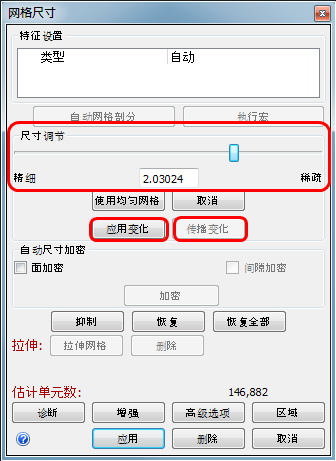 将“尺寸调节”滑块滑动到 2 的位置。