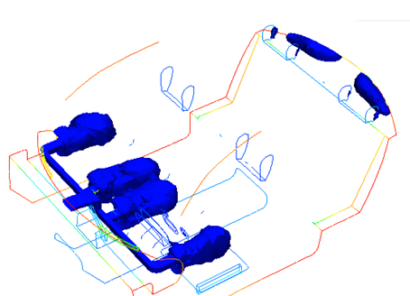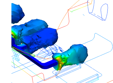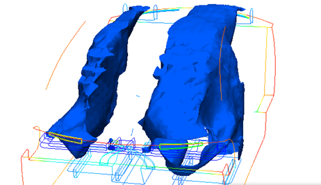 8. 单击“矢量设置”选项卡。从结果菜单中选择速度矢量。将外观更改为轮廓。拖动长度和数值滑块,以查看座舱中的气流情况。