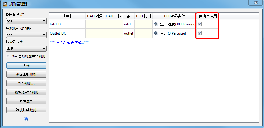 本步骤创建的规则将用于自动指定设计分析的边界条件。