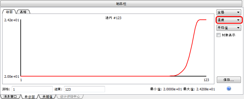 3. 若要查看温度收敛图,从结果菜单中选择“温度”: