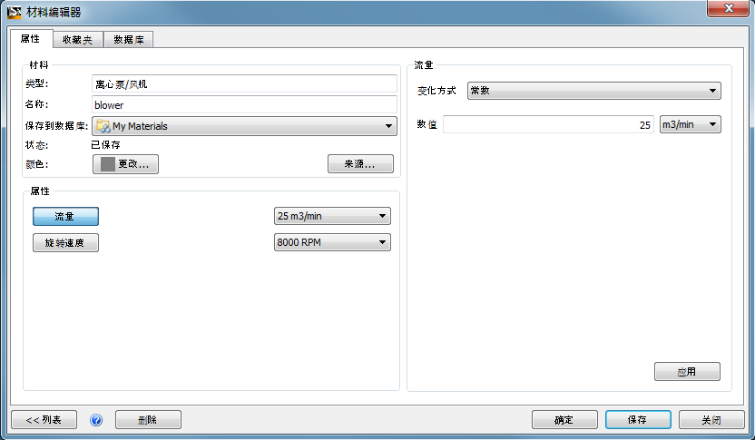 必须先创建离心泵/风机材料,才能设置风机材料。