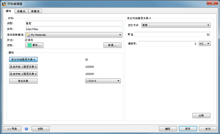 在“材料编辑器”的“名称”字段中输入名称“入口过滤器”。