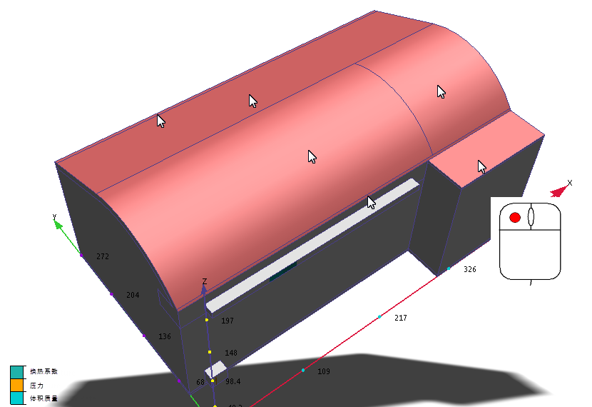15. 若要验证传热系数边界条件已正确地应用于外表面,请查看设计分析栏和面上的彩色条纹: