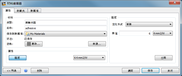 将“类型”更改为“接触热阻”。