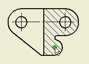 - 將滑鼠移動到右側,直到您位於剖面視圖中右上方孔的中心上。顯示填滿綠色的圓時,點選中心線的端點。
