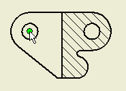 - 將游標移動到剖面視圖右下方圓柱特徵的中心上。顯示填滿綠色的圓時 (用於指示您位於中心點的正上方),按一下以放置中心標記。