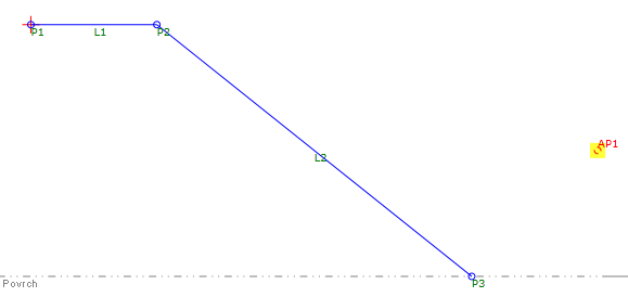 AP1 pomocným označeným bodem. Hodnoty Delta X i Delta Y jsou 0,5 z P3, který směřuje od P2 ve sklonu k cílovému povrchu. Při změně výšky povrchu je zachována pozice P4 vzhledem k P3.