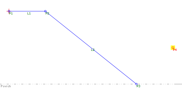 označeným bodem. Hodnoty Delta X i Delta Y jsou 0,5 z P3, který směřuje od P2 ve sklonu k cílovému povrchu. Při změně výšky povrchu je zachována pozice P4 vzhledem k P3.