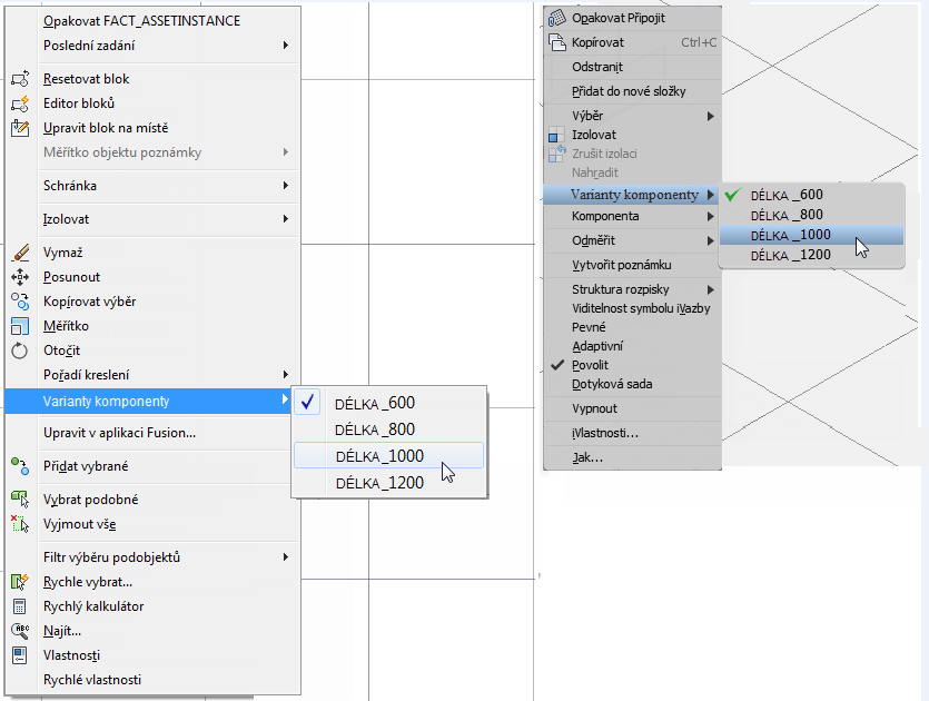 Po umístění varianty komponenty do rozvržení (v aplikaci AutoCAD Factory nebo Inventor Factory) ji lze snadno nahradit jinou variantou.