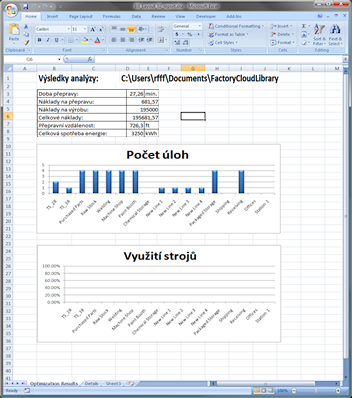Můžete vytvořit zprávu analýzy dat strojů, včetně jejich využití, ve formátu tabulkového procesoru.