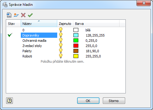 Vyberte hladinu v seznamu hladin a kliknutím na toto tlačítko ji nastavte jako aktuální. |