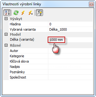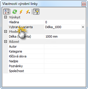 v horní části Prohlížeče vlastností výrobní linky a aktivujte tak název varianty parametru modelu.