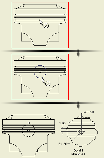 Nastaví měřítko pohledu vzhledem k dané součásti. Zadejte měřítko v políčku nebo klikněte na šipku a vyberte si měřítko ze seznamu běžně používaných měřítek. Můžete zadat měřítko, které není na seznamu. Autodesk Inventor LT Nebude přidáno do seznamu měřítek ve Standardním stylu. Poznámka: Změna měřítka nadřazeného pohledu nemá vliv na měřítko detailního pohledu.
