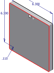 - Zvýrazněte výchozí hodnotu položky Poloměr v textovém poli na kreslicí ploše nebo v dialogu Zaoblit. Vyberte hodnotu kóty 0,110, která se nachází v levém dolním rohu předního pohledu geometrie náčrtu.