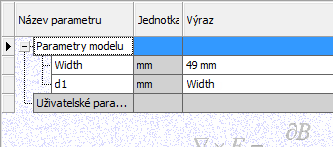 - Položka d0 ve sloupci Parametry modelu se zobrazí jako Šířka. Parametr modelu také udává, že se položka d1 rovná hodnotě šířky.