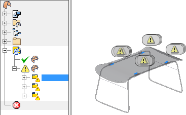 Kliknutím na nadřazený uzel typu chyby zobrazte symbol chyby u všech problémových umístění. Všimněte si, že všechny závažné chyby modelu jsou ve spojovacích plochách.