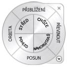 Nástroj SteeringWheel je praktická na obrazovce umístěná paleta známých navigačních ovládacích prvků a také ovládacích prvků, které pro vás mohou být nové.