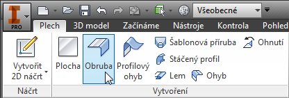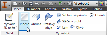 K rozvinu plechu lze přistoupit pomocí prohlížeče nebo pásu karet. Nejdříve vytvořte základní geometrii plechu: