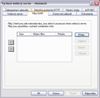 - V dialogu vlastností výchozího webového serveru klikněte na kartu ISAPI Filters.
