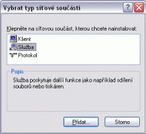 - V okně Výběr typu síťové součásti vyberte položku Služba a potom klikněte na tlačítko Přidání.