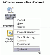- Klikněte pravým tlačítkem myši na položku místního připojení a z místní nabídky vyberte položku Vlastnosti.
