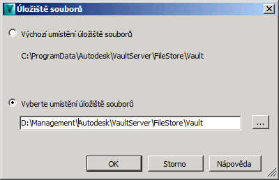Zde databáze úložiště ukládá aktuální soubory, které se nacházejí na serveru úložiště. Pokud povolíte, aby úložiště používalo server File Store Server, můžete ovládat umístění úložiště souborů. V dialogu Úložiště souborů povolte, aby jedno nebo více úložišť používalo k aktualizaci úložiště souborů místo serveru Autodesk Data Management Server server File Server.