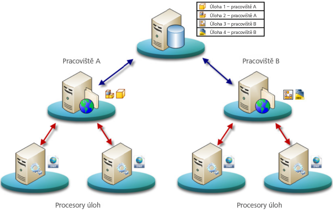 Server úloh je funkce používaná k přesměrování publikování souborů vizualizace (DWF) z konstrukční pracovní stanice během procesu zařazování. Publikování souborů vizualizace velkých sestav může zpomalit zařazování návrhů. Přesměrováním tohoto procesu mohou uživatelé rychle zařadit soubory a zajistit konzistentní vytváření souborů vizualizace. Server úloh lze použít také k synchronizaci vlastností po vyvolání změny životního cyklu souboru.