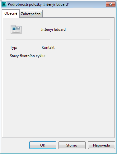3. V dialogu Vlastnosti výběrem karty Obecné zobrazíte obecné vlastnosti instance.