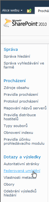 V části Dotazy a výsledky na levé straně klikněte na položku Federovaná umístění.