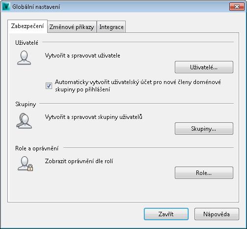 Přístup na kartu Zabezpečení v dialogu Globální nastavení
