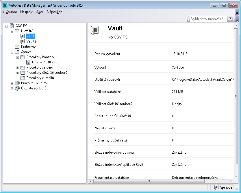 - číslo verze aplikace Autodesk Vault Server, která byla použita k vytvoření úložiště