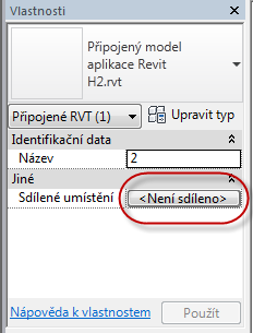 Pokud jste spojení vložili pomocí možnosti umístění Automaticky – podle sdílených souřadnic, musíte provést další kroky a sdílené umístění nakonfigurovat ručně.