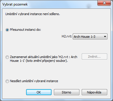 - V dialogu pro výběr umístění vyberte přepínač Přesunout instanci do a vyberte název umístění, ve které se spojení aktuálně nachází (např. dům s klenbou).
