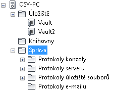 Složka správy umožňuje správci přistupovat k souborům protokolů v aplikaci ADMS Console. K dispozici jsou soubory protokolů pro konzolu, server, úložiště souborů a e-mail. Každý dílčí strom uvádí šest posledních souborů protokolů dané skupiny protokolů.