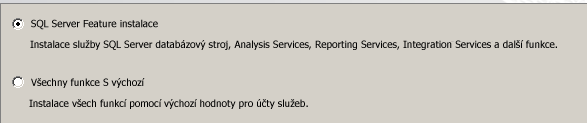 - Spusťte instalační proces systému Microsoft SQL 2008 R2 Server z nabídky instalace výběrem samostatné instalace nového SQL serveru nebo přidáním prvků do existující instalace.