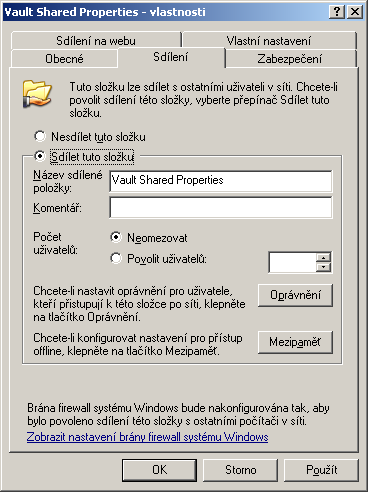 - V dialogu Vlastnosti klikněte na možnost Sdílet tuto složku.