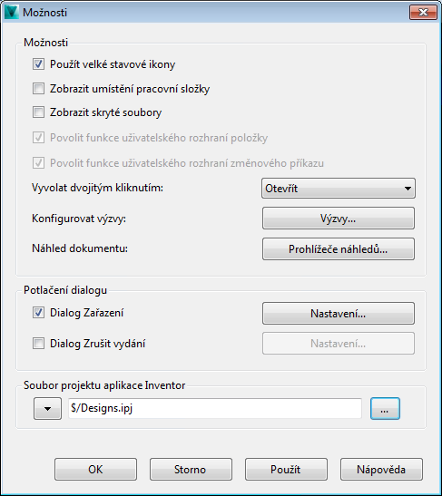 - Pole Soubor projektu aplikace Inventor