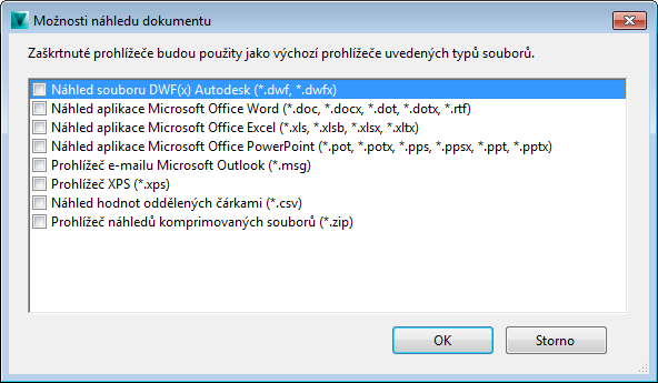 - Seznam všech aplikací, které jsou v aktuálním systému nainstalovány, jsou uvedeny v dialogu Možnosti nástrojů zobrazující náhled dokumentu. Zde můžete povolit aplikace pro náhled dokumentů v podokně Náhled.