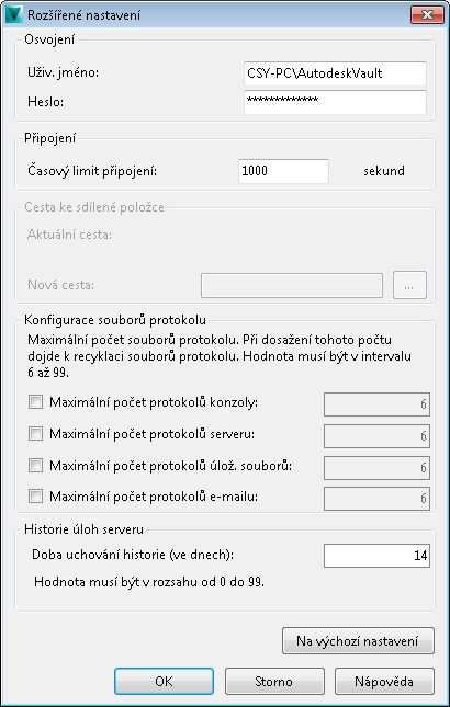 Můžete konfigurovat počet protokolů konzoly, serveru a e-mailu, které se na serveru úložiště uchovávají. Minimální výchozí hodnota je 6 protokolů. Maximální počet protokolů pro jeden typ je 99.