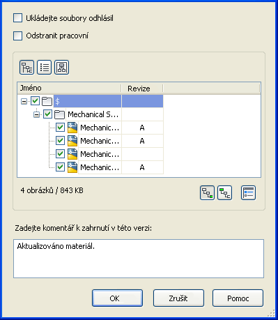 Kliknutím na tlačítko OK dokončete zařazení a zavřete dialog nebo kliknutím na tlačítko Storno zrušte operaci zařazení do úložiště a zavřete dialog. Rezervaci svého souboru v úložišti můžete zrušit pomocí příkazu Zrušit vydání.