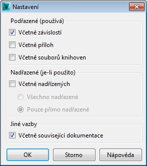 Zadejte, zda mají být zahrnuty pouze podřazené prvky souboru, nadřazené prvky souboru nebo všechny související soubory.