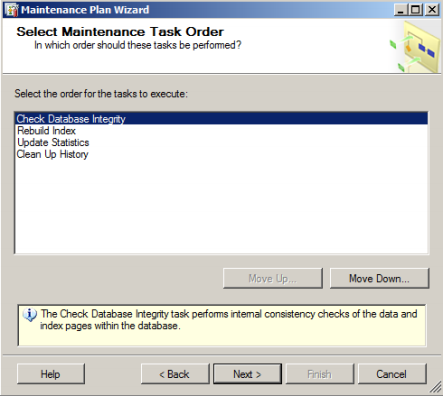 Pomocí plánů údržby lze plánovat úlohy nezbytné k zajištění bezproblémového fungování databáze. Například se jedná o zachování malé velikosti databáze a souboru protokolu transakcí a o hledání nesrovnalostí v databázi.