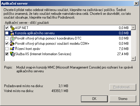 - Vyberte a zaškrtněte možnost Aplikační služby a klikněte na tlačítko Podrobnosti.