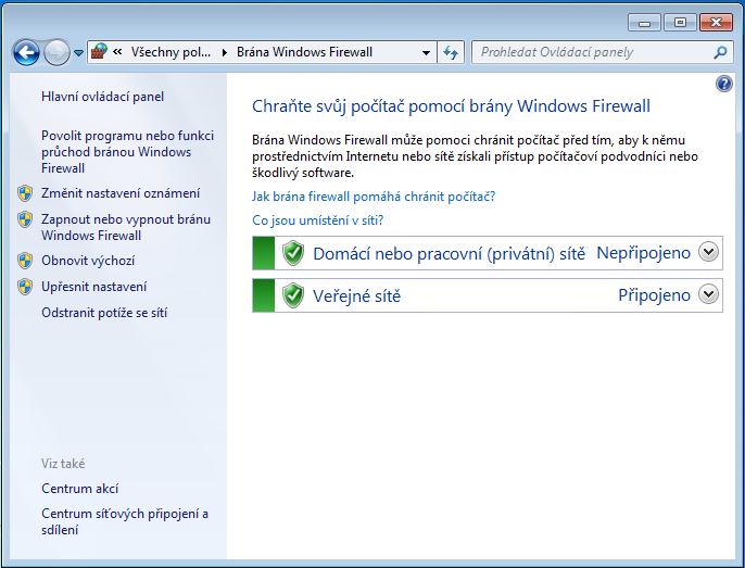 Poznámka: Pokud bránu firewall systému Windows 7 nepoužíváte, lze tuto část přeskočit.