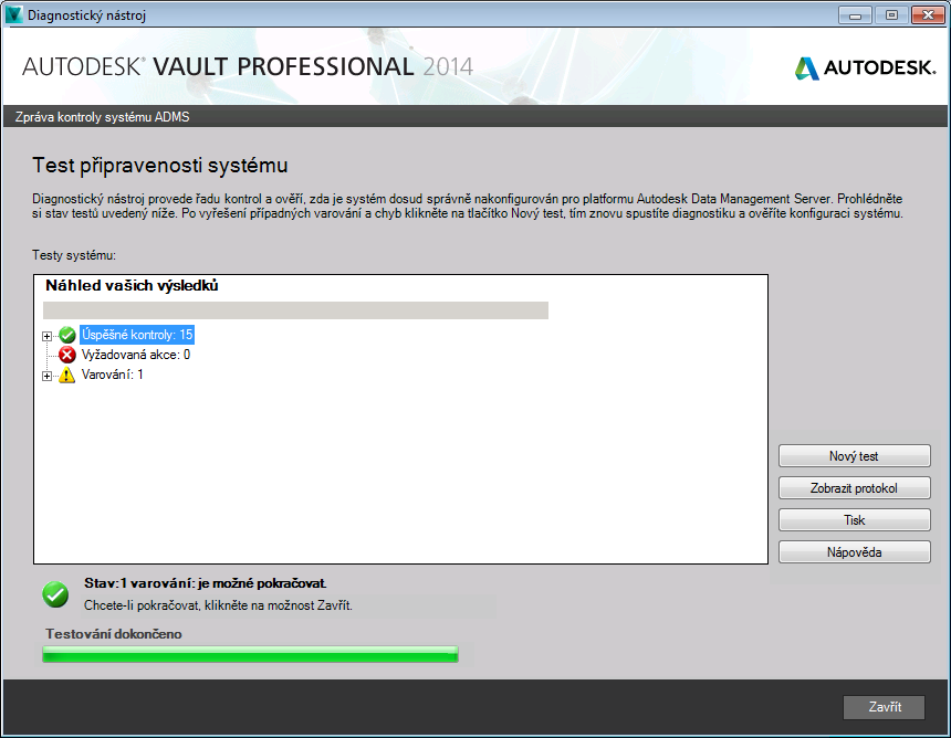 Pokud všechny kontroly proběhnou úspěšně, kliknutím na tlačítko Pokračovat dokončete instalaci.