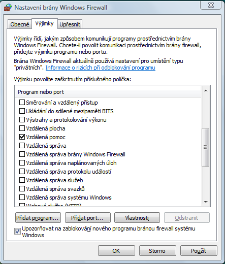 Nastavení brány firewall v systému Windows Server 2003