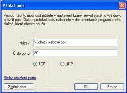 - V dialogu Přidat port zadejte do textového pole Název „Výchozí port webu“ a číslo portu zadejte 80.