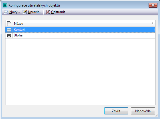 - V dialogu Konfigurace uživatelských objektů klikněte na tlačítko Nový.