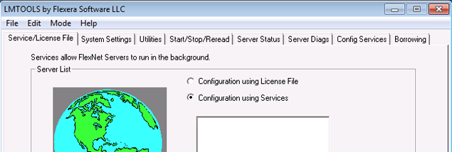 - Chcete-li spustit soubor lmgrd.exe jako službu, vyberte možnost Use Services (Použít služby).