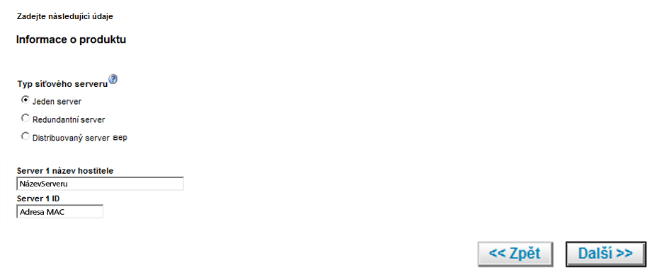 - Zadejte název licenčního serveru a ID licenčního serveru (adresa MAC bez pomlček).
